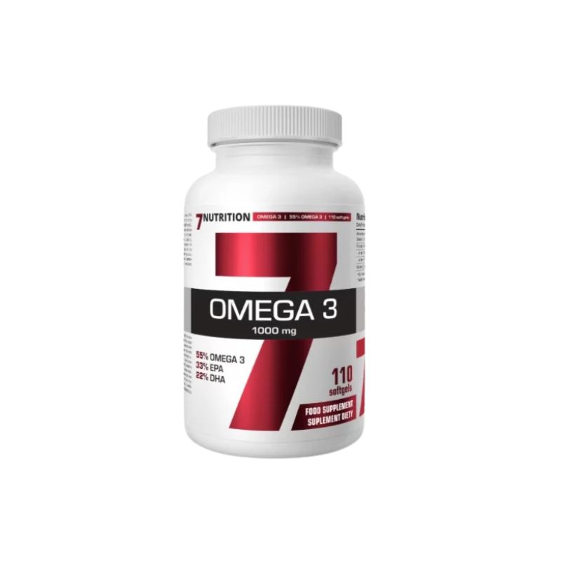 7 Nutrition Omega 3 1000 mg je visokoefikasan dodatak ishrani koji obezbeđuje esencijalne omega-3 masne kiseline dobijene iz najkvalitetnijeg ribljeg ulja. Svaka kapsula sadrži 1000 mg ribljeg ulja sa optimalnim udelom eikozapentaenske (EPA) i dokozapentaenske (DHA) kiseline. Ove polinezasićene masne kiseline su ključne za održavanje vitalnih funkcija organizma, a pošto ih telo ne može samo proizvesti u dovoljnim količinama, neophodan je njihov unos putem ishrane ili suplemenata. 7 Nutrition garantuje čistoću i visok kvalitet ulja, pružajući praktično pakovanje od 110 kapsula za dugotrajnu podršku opštem zdravlju.