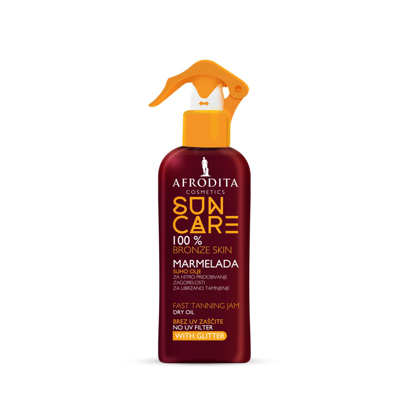 Afrodita Sun Care Marmelada Sprej je proizvod za zaštitu od sunca koji dolazi u praktičnom pakovanju od 150 ml. Ovaj sprej je formulisan sa pažnjom prema potrebama kože, pružajući efikasnu zaštitu od štetnih UV zraka. Njegova jedinstvena tekstura podseća na marmeladu, što omogućava lako i ravnomerno nanošenje na kožu. Proizvod je obogaćen hranljivim sastojcima koji pomažu u očuvanju hidratacije kože, čineći je mekom i glatkom. Afrodita Cosmetics, poznati brend u oblasti kozmetike, garantuje kvalitet i efikasnost svojih proizvoda, a ovaj sprej je savršen izbor za sve koji žele da uživaju u suncu bez brige o oštećenju kože.