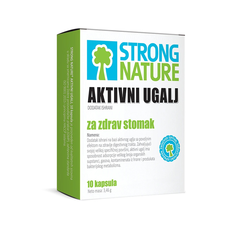 AKTIVNI UGALJ A/10 je prirodni proizvod brenda Strong Nature, poznat po svojim svojstvima apsorpcije i detoksikacije. Aktivni ugalj se dobija procesom zagrevanja uglja, što rezultira stvaranjem porozne strukture koja omogućava vezivanje i uklanjanje toksina, štetnih materija i gasova iz organizma. Ovaj proizvod se često koristi u različitim oblastima, uključujući medicinu, stomatologiju i kozmetiku, zbog svoje sposobnosti da poboljša opšte zdravstveno stanje i doprinese detoksikaciji organizma.