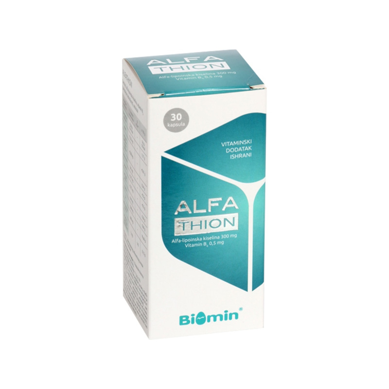 Alfathion Kapsule A/30 su dodatak ishrani koji sadrži aktivni sastojak alfa-lipoičnu kiselinu, poznatu po svojim antioksidativnim svojstvima. Ovaj proizvod je razvijen od strane brenda Biomin i namenjen je podršci metabolizmu i zaštiti ćelija od oksidativnog stresa. Alfa-lipoična kiselina je prirodni spoj koji se nalazi u telu i igra ključnu ulogu u energetskom metabolizmu, kao i u regeneraciji drugih antioksidanata. Alfathion Kapsule su idealne za osobe koje žele da poboljšaju svoje opšte zdravlje, podrže funkciju jetre i poboljšaju nivo energije.
