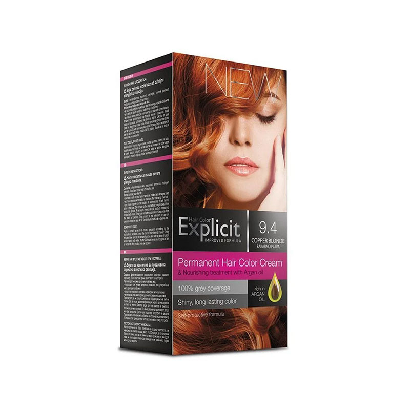 Način upotrebe Da biste koristili Aura Explicit farbu za kosu 9.4 Bakarno plavai, prvo je potrebno pripremiti kosu i radnu površinu. Pre farbanja, preporučuje se da se kosa opere i osuši, kako bi se uklonili svi proizvodi za stilizovanje. Zatim, pomešajte farbu sa aktivatorom prema uputstvu na pakovanju. Nanesite smesu ravnomerno na kosu, počevši od korena do vrhova, koristeći četku za farbanje. Ostavite da deluje prema uputstvu, a zatim temeljno isperite kosu toplom vodom. Na kraju, preporučuje se korišćenje regeneratora za dodatnu hidrataciju i sjaj. Pakovanje Pakovanje sadrži jednu tubu sa bojom za kosu (50 ml), dve kesice emulzionog hidrogena (2 x 40 ml), jednu kesicu hranljivog tretmana sa arganovim uljem (10 ml), jedan par zaštitnih rukavica i uputstvo za upotrebu.