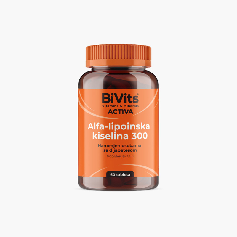 BIVITS ACTIVA ALFA LIPOINSKA KISELINA A/60 je dodatak ishrani koji sadrži alfa lipoinsku kiselinu, snažan antioksidans koji se prirodno nalazi u telu. Ova kiselina igra ključnu ulogu u metabolizmu glukoze i može pomoći u smanjenju oksidativnog stresa. Bivits brend se ističe kvalitetom svojih proizvoda, a ovaj dodatak je formulisan kako bi podržao zdravlje i dobrobit korisnika. Alfa lipoinska kiselina je poznata po svojim svojstvima koja pomažu u održavanju normalne funkcije nervnog sistema i poboljšanju energetske proizvodnje u telu.
