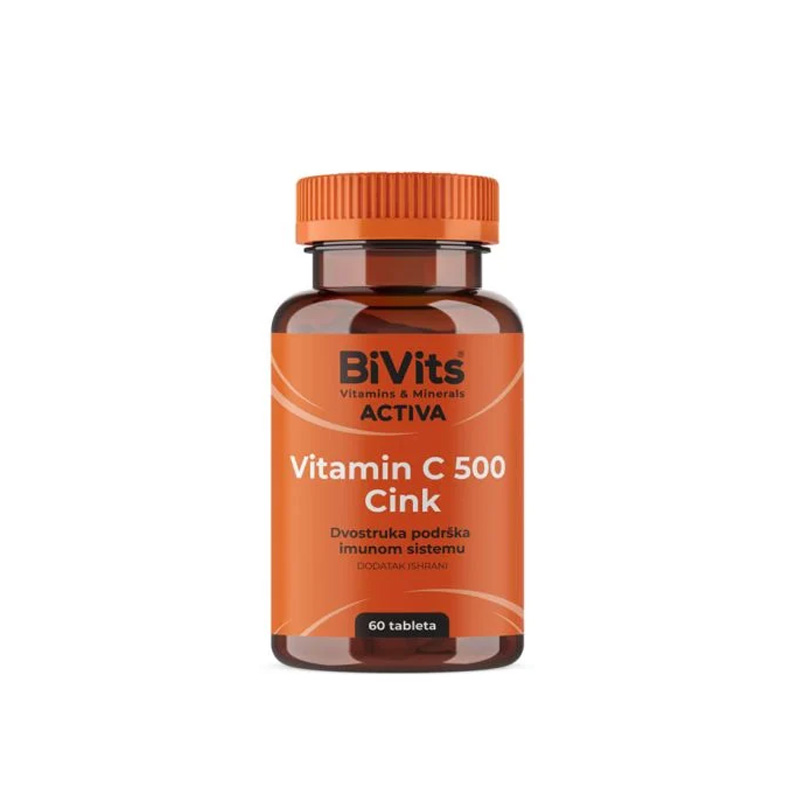 BIVITS ACTIVA VITAMIN C 500 I CINK TABLETE A/60 su dodatak ishrani koji kombinuje vitamin C i cink, dva ključna nutrijenta koja igraju važnu ulogu u održavanju zdravlja. Vitamin C je poznat po svojim antioksidativnim svojstvima i podršci imunološkom sistemu, dok cink doprinosi normalnoj funkciji imunološkog sistema i pomaže u zaštiti ćelija od oksidativnog stresa. Ovaj proizvod je posebno formulisan kako bi pružio optimalnu dozu ovih nutrijenata, što ga čini idealnim za svakodnevnu upotrebu, posebno u periodima povećane potrebe organizma, kao što su sezonske prehlade ili stresne situacije.