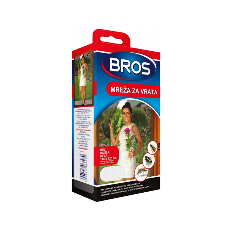 BROS MREŽA ZA VRATA se jednostavno postavlja na vrata pomoću priloženih trakica ili kukica. Prvo, očistite površinu na kojoj će se mreža postaviti kako bi se osiguralo dobro prianjanje. Zatim, postavite mrežu tako da pokriva celo vrata, a zatim je učvrstite na vrhu i sa strane. Mreža se može lako otvoriti i zatvoriti, omogućavajući prolaz bez potrebe za dodatnim naporom. Nakon upotrebe, mrežu možete lako ukloniti i skladištiti do sledeće sezone, čime se produžava njen vek trajanja.