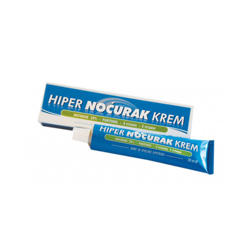 HIPER NOĆURAK KREMA 20% 50ML je proizvod brenda Deta Pharm, koji se koristi za negu kože. Ova krema sadrži 20% ulja noćurka, poznatog po svojim blagotvornim svojstvima. Ulje noćurka je bogato gamma-linolenskom kiselinom (GLA), koja je esencijalna masna kiselina i ima značajnu ulogu u održavanju zdravlja kože. Ova krema je posebno formulisana da hidrira, umiruje i obnavlja kožu, čineći je glatkom i elastičnom. Idealna je za sve tipove kože, a posebno se preporučuje za suvu i osetljivu kožu.