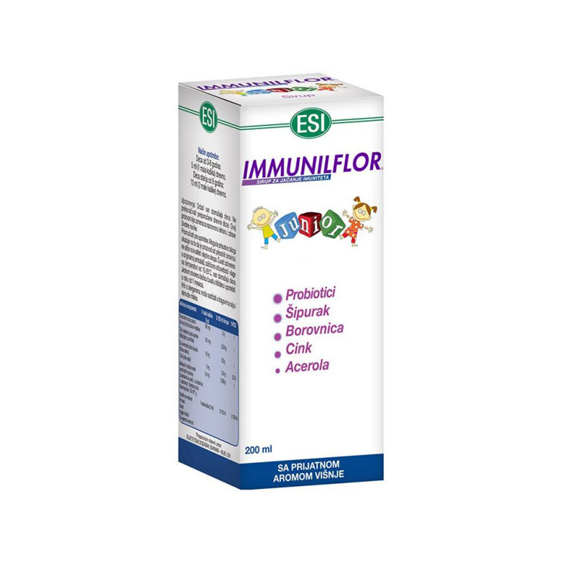IMMUNOFLOR SIRUP JUNIOR je prirodni dodatak ishrani koji je razvijen posebno za decu. Ovaj sirup sadrži pažljivo odabrane sastojke koji podržavaju imunološki sistem i pomažu u očuvanju zdravlja najmlađih. Proizvod je formulisan sa ciljem da pruži dodatnu podršku organizmu tokom perioda kada su deca najizloženija prehladama i virusnim infekcijama. Esi, renomirani brend poznat po svojim kvalitetnim farmaceutskim proizvodima, garantuje sigurnost i efikasnost ovog sirupa, koji je prijatan za ukus i lako se konzumira.
