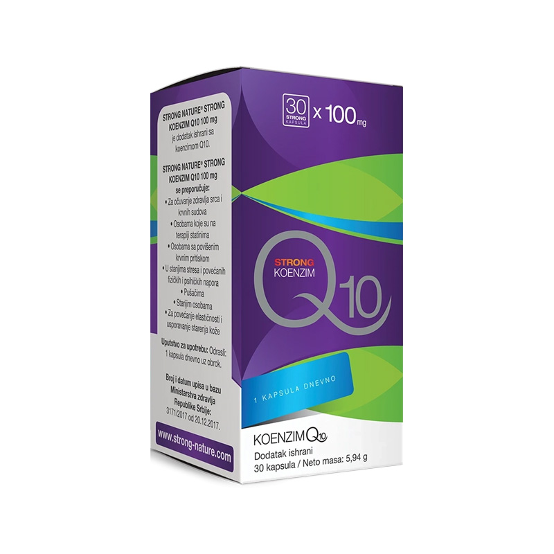 KOENZIM Q10 30X100 je dodatak ishrani brenda Strong Nature, koji sadrži koenzim Q10, prirodni antioksidans koji se nalazi u svakoj ćeliji ljudskog tela. Ovaj koenzim igra ključnu ulogu u proizvodnji energije u mitohondrijama, što ga čini važnim za optimalno funkcionisanje srca i drugih vitalnih organa. S obzirom na to da se nivo koenzima Q10 smanjuje s godinama, suplementacija ovim proizvodom može pomoći u održavanju zdravlja i vitalnosti. Strong Nature je poznat po svojim visokokvalitetnim suplementima, a KOENZIM Q10 30X100 je formulisan kako bi pružio efikasnu podršku organizmu.
