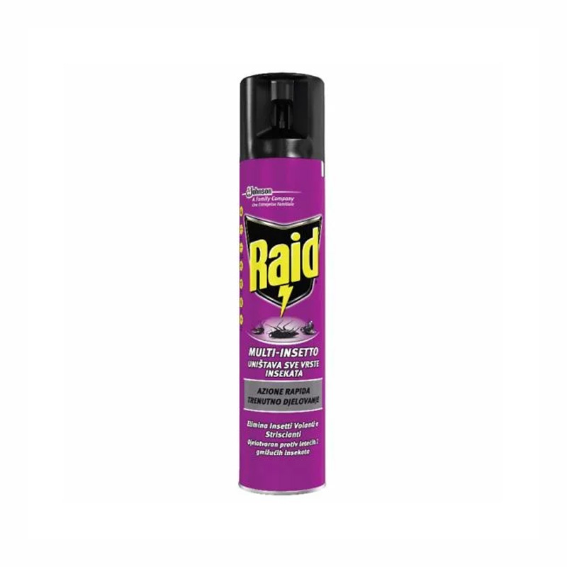 RAID SPREJ PROTIV GMIŽUĆIH INSEKATA 300ML je efikasan insekticid koji se koristi za suzbijanje različitih vrsta gmižućih insekata, kao što su bube, mravi, žohari i drugi štetnici. Ovaj proizvod dolazi u praktičnom pakovanju od 300ml, što ga čini idealnim za upotrebu u domaćinstvu. RAID sprej deluje brzo i efikasno, pružajući dugotrajnu zaštitu od insekata. Njegova formula je razvijena kako bi se osigurala maksimalna efikasnost uz minimalan uticaj na okolinu, čineći ga sigurnim za upotrebu u zatvorenim prostorima.