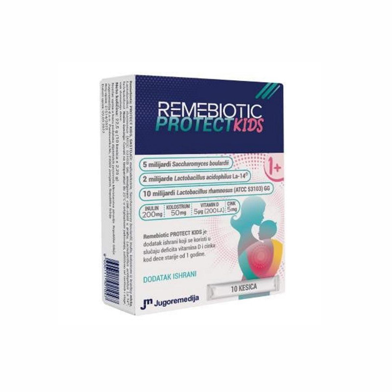 REMEBIOTIC PROTECT KIDS je probiotik namenjen deci, koji dolazi u praktičnim kesicama. Ovaj proizvod brenda Jugoremedija sadrži pažljivo odabrane sojeve probiotskih bakterija koji doprinose očuvanju zdravlja crevne flore i jačanju imunološkog sistema. REMEBIOTIC PROTECT KIDS je posebno formulisan kako bi zadovoljio potrebe najmlađih, a njegova prijatna aroma i ukus čine ga lako prihvatljivim za decu. Proizvod je bez dodatka šećera i veštačkih boja, što ga čini sigurnim izborom za roditelje koji žele da podrže zdravlje svoje dece.