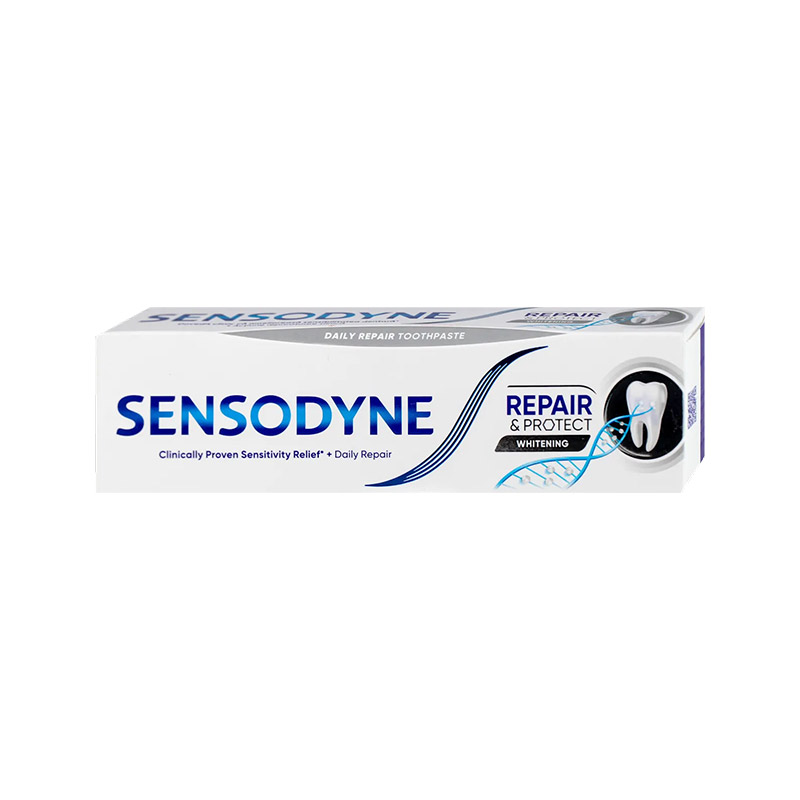 Sensodyne Repair & Protect Whitening pasta za zube kombinuje moć stannous fluorida sa nežnim beljenjem, pružajući dvostruku koristi: popravku osetljivih zuba i uklanjanje površinskih mrlja. Aktivni sastojak formira zaštitni sloj na dentinu, efikasno umiruje osetljivost i štiti od karijesa, dok istovremeno vraća prirodnu belinu zuba.