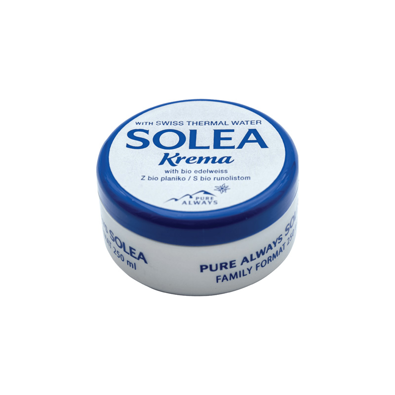 SOLEA KREM 250ML je proizvod brenda Solea, razvijen sa ciljem da pruži efikasnu negu kože. Ovaj kremasti preparat sadrži pažljivo odabrane sastojke koji deluju umirujuće i hidratantno, čineći ga idealnim rešenjem za različite probleme sa kožom. SOLEA KREM je posebno formulisan da se lako upija, ostavljajući kožu mekom i glatkom. Njegova jedinstvena formula pomaže u obnavljanju prirodne ravnoteže kože, čineći je otpornijom na spoljašnje uticaje.