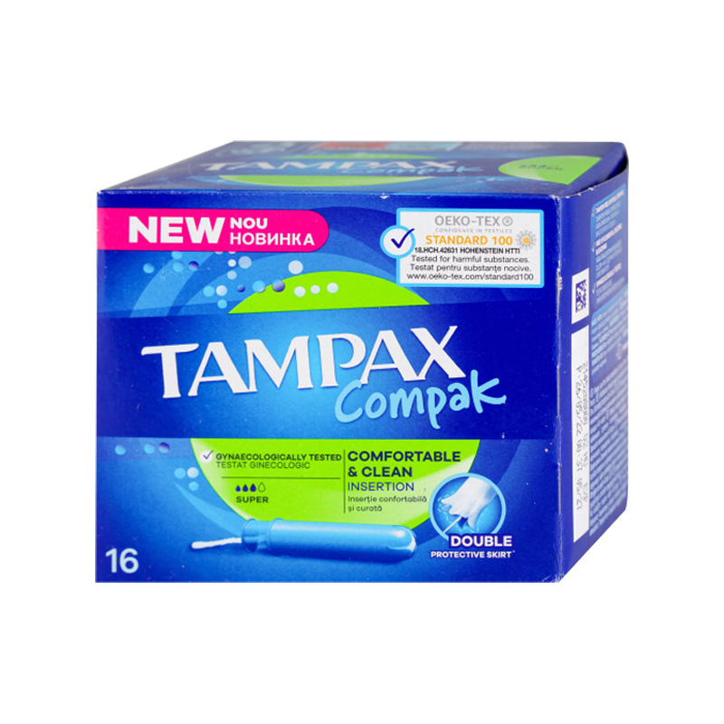 Da biste koristili TAMPAX TAMPONI COMPAK SUPER, prvo operite ruke kako biste osigurali higijenu. Zatim, izvadite tampon iz pakovanja i držite ga za donji deo. Uzmite udoban položaj, bilo da sedite ili stojite, i lagano umetnite tampon u vaginu pod uglom od 45 stepeni. Kada je tampon pravilno umetnut, ne bi trebalo da osećate nelagodnost. Nakon što tampon postavite, povucite aplikator da biste ga oslobodili. Tampon treba menjati svaka 4 do 8 sati, u zavisnosti od jačine menstrualnog toka. Nikada ne ostavljajte tampon duže od 8 sati kako biste izbegli rizik od TSS (toksičnog šok sindroma).