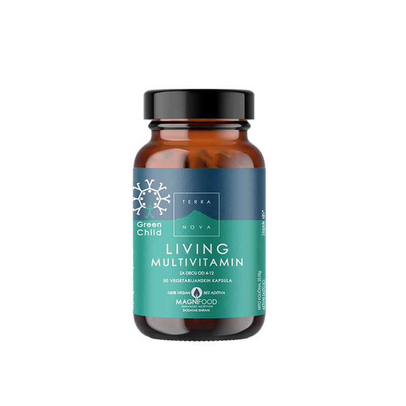TERRANOVA GREEN CHILD MULTIVITAMIN A/50 je dodatak ishrani koji je posebno formulisan za decu. Ovaj multivitamin sadrži pažljivo odabrane vitamine i minerale koji su neophodni za pravilan rast i razvoj mališana. Proizvod je napravljen od prirodnih sastojaka, bez dodatka veštačkih boja, aroma ili konzervansa, što ga čini sigurnim izborom za decu. Terranova se ponosi svojim pristupom koji kombinuje nauku i prirodu, pružajući proizvode koji su efikasni i lako apsorbovani u organizmu.