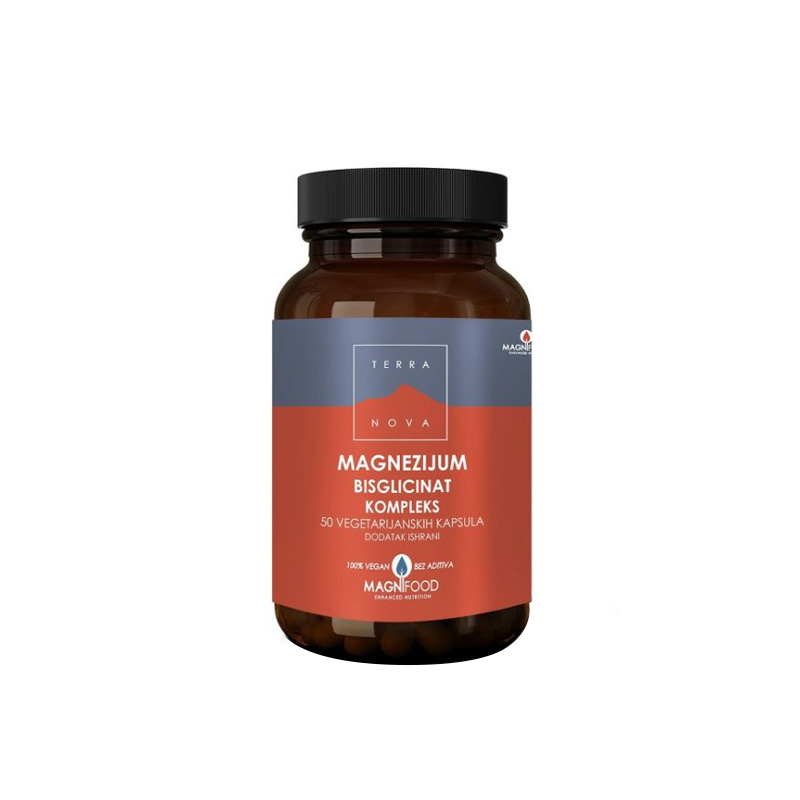 TERRANOVA MG BISGLICINAT 100MG A/50 je dodatak ishrani koji sadrži magnezijum u obliku bisglicinata, koji se smatra jednim od najefikasnijih oblika magnezijuma za apsorpciju u organizmu. Ovaj proizvod brenda Terranova je formulisan kako bi podržao optimalno zdravlje i dobrobit. Magnezijum je esencijalni mineral koji igra ključnu ulogu u brojnim biološkim procesima, uključujući regulaciju mišićne i nervne funkcije, proizvodnju energije i održavanje zdravlja kostiju. Terranova se ponosi korišćenjem prirodnih sastojaka i bez dodataka veštačkih boja, aroma ili konzervansa, čime se osigurava visok kvalitet proizvoda.
