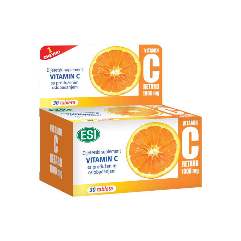 VITAMIN C RETARD 1000MG A/30 je dodatak ishrani koji sadrži visoku dozu vitamina C, poznatog po svojim antioksidativnim svojstvima. Ovaj proizvod brenda Esi je formulisan tako da obezbedi postepeno oslobađanje vitamina C u organizmu, čime se omogućava duže delovanje i bolja apsorpcija. Vitamin C je esencijalan nutrijent koji igra ključnu ulogu u održavanju zdravlja, podržava imunološki sistem, pomaže u smanjenju umora i iscrpljenosti, kao i u održavanju normalne funkcije krvnih sudova. Ovaj proizvod je idealan za sve koji žele da unaprede svoje opšte zdravstveno stanje i podrže svoj organizam u borbi protiv stresa i slobodnih radikala.