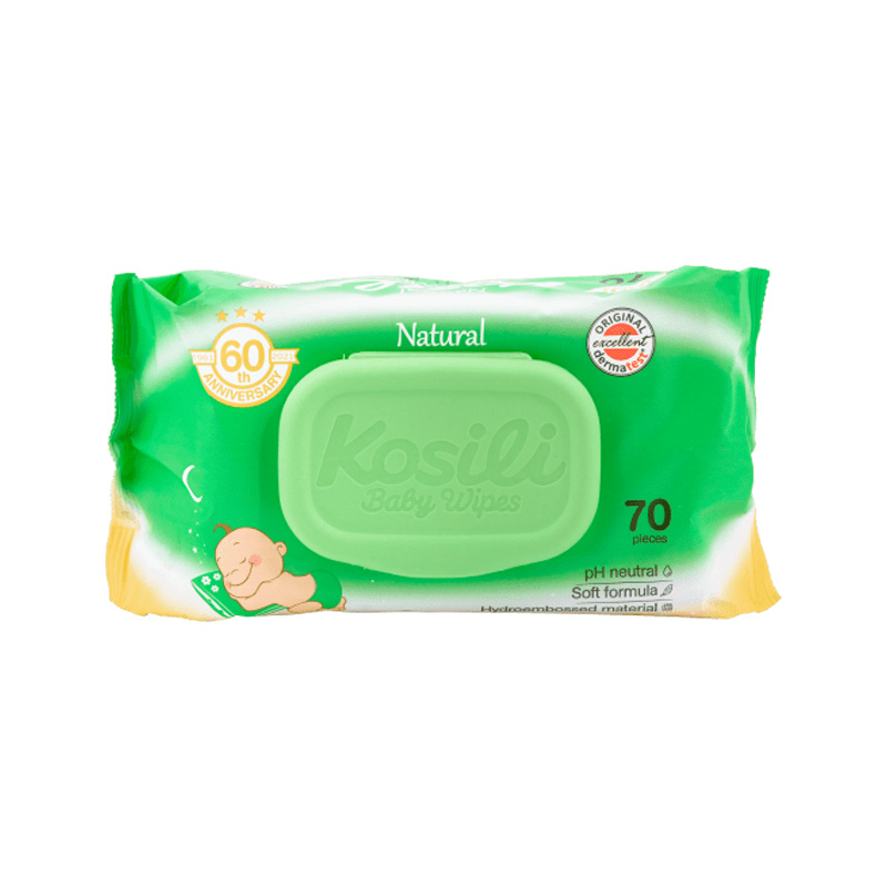 Vlažne maramice Kosili Natural A/70 se koriste jednostavno i praktično. Potrebno je otvoriti pakovanje i izvući jednu maramicu. Nježno obrišite kožu lica ili tela, fokusirajući se na područja koja zahtevaju čišćenje ili osvežavanje. Nakon upotrebe, maramice se mogu baciti u kantu za otpad, a pakovanje se može ponovo zatvoriti kako bi se očuvala vlažnost preostalih maramica. Preporučuje se korišćenje maramica po potrebi, posebno nakon fizičkih aktivnosti ili tokom putovanja, kako bi se koža održala čistom i hidriranom.